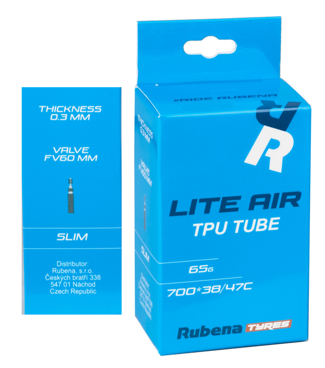 duše TPU (termoplastický polyuretan) je flexibilní a odolný materiál s vlastnostmi gumy a plastu, ultra nízká hmotnost, vysoká odolnost (materiál je velmi odolný proti propíchnutí), nízký valivý odpor, hmotnost 68g, šířka 42mm, tloušťka stěny 0,3mm.... detailní popis
