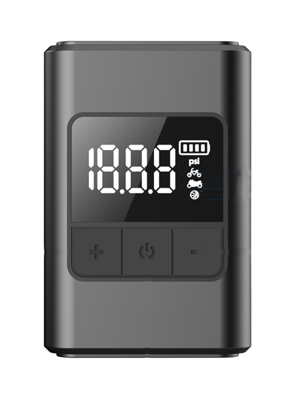 mini akumulátorový kompresor, maximální tlak 120 PSI, vhodné pro ventilky AV, FV, jehla na míč, dobíjení USB-C, indikátor stavu baterie, baterie Li-Pol 1300 mAh, bezkartáčový motor 60W, hmotnost 160g, rozměr 76x51mm,